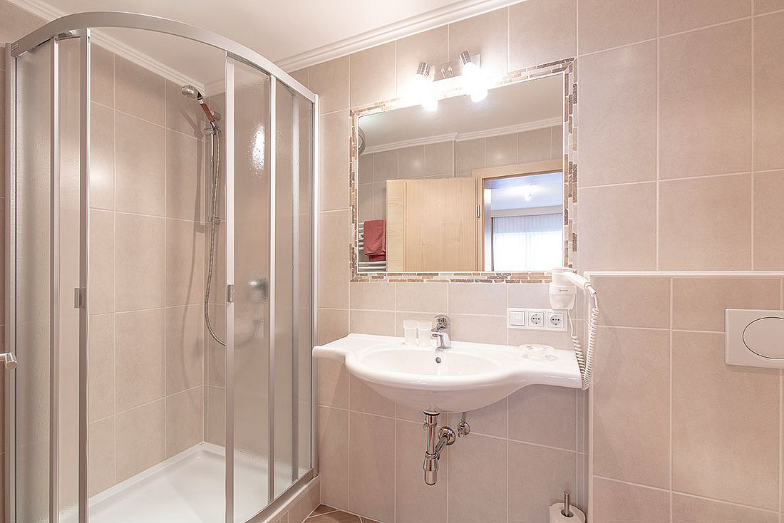 - 1 DZ mit Dusche und WC. Maße Doppelbett 180 x 200 cm.